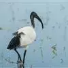 圣鹮头、颈黑色,身体白色,初级和次级飞羽尖端黑色。喙长且厚、黑色下弯,跗蹠与趾黑色。下背部有大量黑色纱状装饰羽,翼下裸露皮肤红色,体侧有时带黄褐色。亚成鸟的头、颈有羽毛,斑驳黑色带有白色纵纹,…全部>>