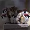 锡嘴雀:全长184厘米,头顶棕褐,头侧及腰和尾上覆羽等较淡;后颈灰色,翕和下背微褐;翅上的内侧覆羽白,形成宽阔白色带斑;外侧覆羽及飞羽黑色,后者先端具紫色和蓝绿色光辉,内翈具白色斑;尾羽大都黑褐色,…全部>>