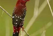 红梅花雀小型鸟类,体长9-10厘米。雄鸟通体朱红色,背、肩、胸等满布白色小斑点,两翅和尾黑褐色均具白色端斑,嘴红色,脚蜡黄色。雌鸟上体淡褐色或赭褐色,翅上中覆羽、大覆羽和内侧飞羽末端具白色斑点,…全部>>