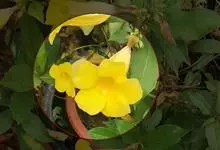 黄蝉属,夹竹桃科,约15种,分布于热带美洲,中国引入栽培的有黄蝉A. neriifolia Hook. 和软枝黄蝉 A. cathartica L. 2种,广州极常见,供观赏。直立或藤状灌木;叶生或…全部>>