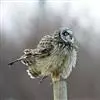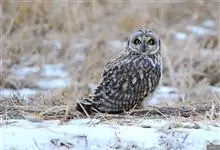 短耳鸮又名小耳木兔、田猫王、夜猫子等,是鸮形目鸱鸮科耳鸮属中小型猛禽动物。成鸟面盘显著,眼周黑色;眼先及内侧眉纹灰白色,面盘余部棕黄色杂以黑色细羽干纹;耳簇羽短小而几乎不外露,…全部>>