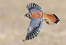 红隼:是隼科、隼属的小型猛禽之一。体重173-335克,体长305-360毫米。翅狭长而尖,尾亦较长,外形和共同爪隼非常相似。雄鸟头蓝灰色,背和翅上覆羽砖红色,具三角形黑斑;腰、尾上覆羽和尾羽蓝灰色,…全部>>