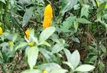 金苞花是爵床科、金苞花属的常绿草本植物。叶长圆形或披针形,先端渐尖,基部通常楔形,下面主脉被微柔毛;顶生穗状花序由密、短的总花梗组成,卵形苞片膜质,下部的近心形,小苞片披针形或匙形,与花萼等长,…全部>>