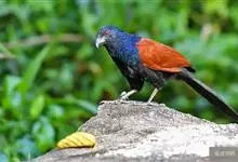 褐翅鸦鹃,是鹃形目鸦鹃科鸦鹃属的鸟类。褐翅鸦鹃的身体为黑色;头颈和胸带蓝紫色金属光泽并具黑亮的羽干纹,下胸至腹部泛金属绿光泽;两翼和肩部为棕栗色,外侧飞羽具暗色羽端,尾羽闪铜绿色光泽;虹膜赤红色,…全部>>