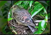 山斑鸠,是鸽形目鸽鸠科斑鸠属鸟类,又名金背斑鸠、棕背斑鸠、山鸠、金背鸠、麒麟斑、麒麟鸠、东方斑鸠、绿斑鸠、山鸽子。山斑鸠颈侧具明显黑白色条纹的块状斑,上体深褐色、具扇贝状斑纹,羽缘棕色,尾羽近黑色,…全部>>