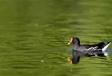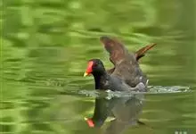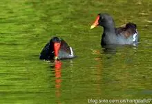 黑水鸡:是鹤形目、秧鸡科的鸟类,共有12个亚种。中型涉禽,体长24-35厘米。嘴长度适中,鼻孔狭长;头具额甲,后缘圆钝;嘴和额甲色彩鲜艳。翅圆形,第2枚初级飞羽最长,或第2枚和第3枚初级飞羽等长,…全部>>
