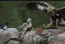 金雕:属于鹰科、雕属的猛禽。体长76-102厘米,翼展达2.3米,体重2-6.5千克。雌雄同色。未成年时,头、颈黄棕色;两翼飞羽除了最外侧三枚外基部均缀有白色,其余身体部分暗褐色;羽尾灰白色,…全部>>