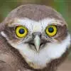 小雕鸮是脊索动物门鸟纲今颚总目、鸮形目雕鸮属动物。面盘显著,为淡棕黄色,杂以褐色的细斑。眼先密被白色的刚毛状羽,各羽均具黑色端斑。眼的上方有一个大形黑斑。皱领为黑褐色。头顶为黑褐色,羽缘为棕白色,…全部>>