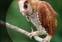 栗鸮:是鸟纲、草鸮科的猫头鹰。体长约29厘米,体重311-360克。是一种中等体型的红褐色鸮。其心形脸庞及时而竖起的“耳朵”与仓鸮甚似。上体红褐而具黑白点斑,下体皮黄偏粉具黑点,脸近粉色。虹膜深褐色,…全部>>
