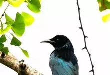 发冠卷尾是中型鸟类,体长28-35厘米。通体绒黑色缀蓝绿色金属光泽,额部具发丝状羽冠,外侧尾羽末端向上卷曲。栖息于海拔1500米以下的低山丘陵和山脚沟谷地带,多在常绿阔叶林、次生林或人工松林中活动。…全部>>