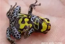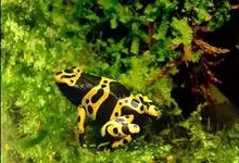 箭毒蛙,是无尾目箭毒蛙科箭毒蛙属动物。箭毒蛙体形较小,一般长1-6厘米,身上的颜色多为黑色与红色、黄色、橙色、绿色等;皮肤内有粘液分泌腺,能使皮肤随时保持湿润;四肢布满鳞纹;足间无蹼。…全部>>