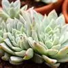芙蓉雪莲是景天科拟石莲花属的植物。由于叶片表面覆盖着一层厚霜粉,通常呈现出白色;日照增多,温差增大后叶缘、叶尖会呈现出粉红色或橙红色。…全部>>