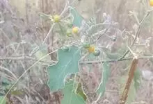 刺天茄,是茄科茄属的多年生草本植物。茎直立,枝条有刺;叶片大,互生,卵形或椭圆形,有长柄,叶面有短柔毛;花单生于枝顶,外面密被星状绒毛及细直刺,果被星状毛及直刺,浆果球形,光亮,…全部>>