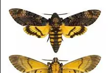 鬼脸天蛾,是鳞翅目天蛾科面形天蛾属动物。成虫翅展100~125毫米,体黑褐色;胸背有骷髅形斑纹;卵圆球形,直径约2毫米,淡黄绿色,表面光滑;老熟幼虫体长70~90毫米,蛹体长约56毫米;前翅为褐色,…全部>>