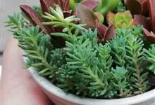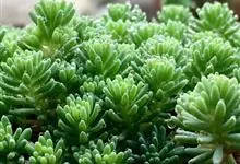 薄雪万年草别名矶小松,景天科景天属多年生草本植物,其细小的蓝绿色棒状叶片环绕生长于茎端,茎匍匐生长接触地面易着生不定根,整片生长郁郁葱葱犹如蓝色地毯,绿化效果极为秀美。原产西班牙,…全部>>