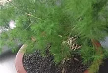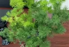 蓬莱松是天门冬科、天门冬属多年生丛生草本植物。宿存,圆柱形肉质根,纵截面为绿色和表面灰色。植株高可达3米。茎呈圆柱形或近四边形,底部木质化,具有灰色或灰褐色。幼嫩的茎在每个节上都被紫绿色鳞片包,…全部>>