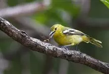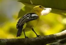 黑翅雀鹎:体重14-19克,体长11.5-16厘米。是树栖性绿色小鸟,外形与叶鹎相似,下体黄色。鸟喙直,翼长而尖,总体羽毛是绿色和黄色相结合,翼上具两道明显近白色横纹,翼近黑而羽缘白。…全部>>