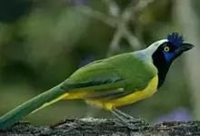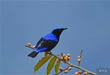 蓝翅叶鹎:小型鸟类,体长15-18厘米。雄鸟通体草绿色,尾蓝绿色,肩和翅亮蓝 色,胸缀有黄色,颏、喉黑色。雌鸟颏,喉蓝绿色。栖息在海拔1500米以下的常绿阔叶林、次生林和林缘疏林灌丛中。…全部>>
