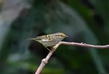 林柳莺:体长约11厘米,是一种体型小的黄绿色柳莺。两性相似。上体除两翅和尾羽暗褐色外,余均呈黄绿色;眉纹自嘴基伸向颈后,呈黄色;贯眼纹短,呈暗褐色;脸颊、颏、喉、胸呈黄色,但胸部色淡,腹部为丝光白色。…全部>>