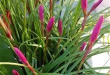 小韭兰学名韭菜莲又名风雨花、菖蒲莲、红玉帘和旱水仙,多年生草本,鳞茎卵球形,基生叶常数枚簇生,线形,扁平,花单生于花茎顶端,下有佛焰苞状总苞,花玫瑰红色或粉红色,蒴果近球形,种子黑色,花期夏秋。韭莲…全部>>