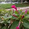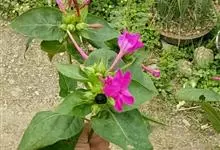 即紫茉莉,英文名:Four-o'clock,Marvel of Peru,为紫茉莉科、紫茉莉属多年生草本植物,一年生栽培。株高50~80cm。根粗壮,茎多分枝而散生。叶对生,卵形或心脏形。花数朵簇生…全部>>