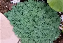 薄雪万年草别名矶小松,景天科景天属多年生草本植物,其细小的蓝绿色棒状叶片环绕生长于茎端,茎匍匐生长接触地面易着生不定根,整片生长郁郁葱葱犹如蓝色地毯,绿化效果极为秀美。原产西班牙,…全部>>