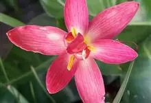 小韭兰学名韭菜莲又名风雨花、菖蒲莲、红玉帘和旱水仙,多年生草本,鳞茎卵球形,基生叶常数枚簇生,线形,扁平,花单生于花茎顶端,下有佛焰苞状总苞,花玫瑰红色或粉红色,蒴果近球形,种子黑色,花期夏秋。韭莲…全部>>