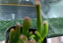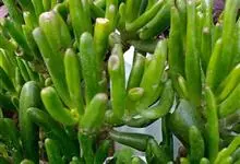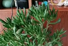 筒叶花月,是景天科青锁龙属的多年生草本植物。植株多分株,灌木状,茎较粗壮,圆柱形,表皮灰褐色;叶片肉质,互生,呈圆筒状,簇生于茎或分枝顶端,叶端呈斜截形,截面为椭圆形;花呈星状,淡白色;花期秋季。…全部>>