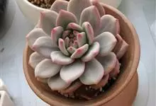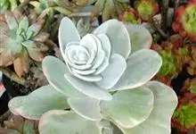 芙蓉雪莲是景天科拟石莲花属的植物。由于叶片表面覆盖着一层厚霜粉,通常呈现出白色;日照增多,温差增大后叶缘、叶尖会呈现出粉红色或橙红色。…全部>>