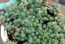 薄雪万年草别名矶小松,景天科景天属多年生草本植物,其细小的蓝绿色棒状叶片环绕生长于茎端,茎匍匐生长接触地面易着生不定根,整片生长郁郁葱葱犹如蓝色地毯,绿化效果极为秀美。原产西班牙,…全部>>