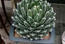 皇后龙舌兰是天门冬科、龙舌兰属多年生草本多浆植物。无主茎,叶丛生,莲座状,株幅40厘米。叶较多,先端较细,三棱形,腹面扁平,背面圆形呈微龙骨凸起,长10-30厘米,宽2.5-7.5厘米,厚肉质硬,…全部>>