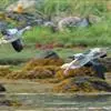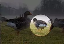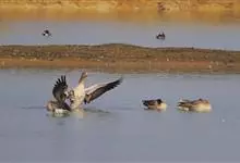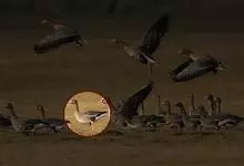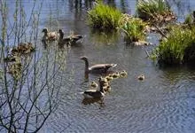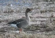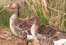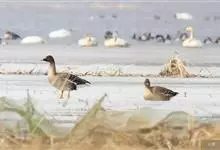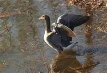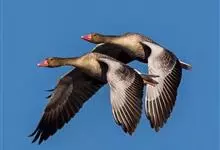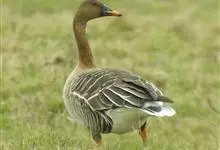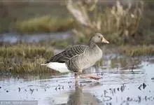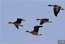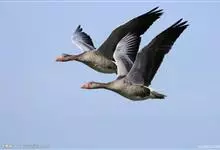 灰雁:体长70-90厘米,翼展147-182厘米,体重2.5-4千克,寿命17年。体大而肥胖。嘴、脚肉色,上体灰褐色,下体污白色,飞行时双翼拍打用力,振翅频率高。脖子较长。腿位于身体的中心支点,…全部>>