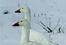 雪雁是鸭科雁属鸟类,雁属中体形大,个体重的鸟类。羽毛洁白,翼角黑色。飞行时双翼拍打用力,振翅频率高。脖子较其他雁类略短长。腿位于身体的中心支点,行走自如。有扁平的喙,边缘锯齿状,有助于过滤食物。…全部>>