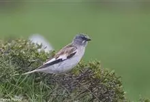 白斑翅雪雀:属典型的高原鸟类,共有7个亚种,体重30-34克,体长142-169毫米,较雪雀属中其他种体型稍大;雄鸟头灰,颏黑,翕和肩富于褐色;翼大部白色;除一对中央尾羽黑色外其余均为白色而具黑色羽端,…全部>>