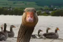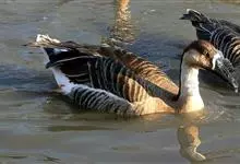 灰雁:体长70-90厘米,翼展147-182厘米,体重2.5-4千克,寿命17年。体大而肥胖。嘴、脚肉色,上体灰褐色,下体污白色,飞行时双翼拍打用力,振翅频率高。脖子较长。腿位于身体的中心支点,…全部>>
