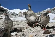 雪鸡共有5种,是世界上分布最高的雉类,一般分布3000~6000米,直至雪线以上,能终年留居山顶,平原少见。雪鸡以植物的茎、根、叶、芽等为食,有时兼吃昆虫和小型无脊椎动物。…全部>>