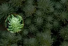 薄雪万年草别名矶小松,景天科景天属多年生草本植物,其细小的蓝绿色棒状叶片环绕生长于茎端,茎匍匐生长接触地面易着生不定根,整片生长郁郁葱葱犹如蓝色地毯,绿化效果极为秀美。原产西班牙,…全部>>