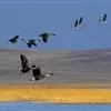 丹顶鹤:是鹤科、鹤属的一种大型涉禽,体长120-160厘米。颈、脚较长,通体大多白色,头顶鲜红色,喉和颈黑色,耳至头枕白色,脚黑色,站立时颈、尾部飞羽和脚黑色,头顶红色,…全部>>