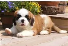 圣伯纳犬,别名巴里汉德,属于大型工作犬,肩高约65~90厘米,体重约50~90千克。圣伯纳犬身体强壮,被毛红褐色和白色相间,头圆而宽大。颈部强壮,胸宽深,背直。前肢长直,腕关节略前倾,后肢腿骨粗壮,…全部>>