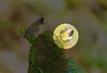 银耳相思鸟小型鸟类,体长14~18厘米。头顶黑色,耳羽银灰色,前额橙黄色;外侧飞羽橙黄色,基部朱红色,极为鲜艳、醒目。尾圆形,尾上、尾下覆羽朱红色,尾暗灰褐色,外侧尾羽橙黄色,其余上体橄榄绿或橄榄黄色。…全部>>