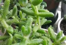 刺叶露子花 Schwantes)是番杏科、露子花属植物。肉质灌木。植株高30厘米左右。分枝密集,二歧分枝,小枝粗0.2-0.4厘米,灰褐或浅褐色,幼枝上有白色小突起。叶肉质,色翠绿,卵圆状半球形,…全部>>