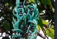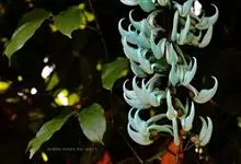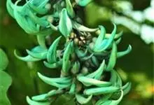 翡翠葛是豆科翡翠葛属植物,多年生常绿大型藤本,茎木质,直径可达30厘米,长可达21.3米。三出复叶,革质光亮,小叶长椭圆形,长7.6-12.7厘米,中间小叶最长。花两性,春季至初夏开花,蓝绿色,…全部>>