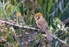 点胸鸦雀是莺科、鸦雀属小型鸟类,体长18-21厘米。头顶至枕橙棕色,嘴橙黄色、短而粗厚,脸皮黄色,耳覆羽和颊后部黑色,眼圈白色。上体棕褐色。颏黑色,其余下体淡皮黄白色,喉和上胸具黑色矢状斑。…全部>>