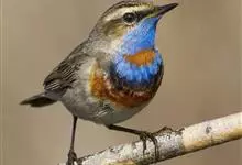 蓝点颏亦称“蓝喉歌鸲”,通称蓝靛颏儿。身体大小和麻雀相似,体长12-13厘米,体重17-18克。头部、上体主要为土褐色。眉纹白色。尾羽黑褐色,基部栗红色。颏部、喉部辉蓝色,下面有黑色横纹。下体白色。…全部>>