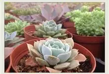 蓝石莲是景天科、拟石莲花属的多肉植物。茎部粗壮,成熟植株茎部木质化。叶片莲座型密集排列,株径不会很大,叶片相对较薄,常年绿色,表面布有白色粉末,中部凹陷,呈倒水滴状。叶尖较尖,叶缘光滑无褶皱,…全部>>
