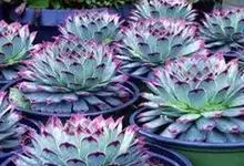 紫珍珠是景天科石莲花属的多年生肉质草本植物。植株中小型;叶片肉质,匙形,呈莲座状紧密排列;叶片粉紫色,叶缘呈粉白色,光照充足时颜色亮丽,不足时叶色会呈现深绿色或灰绿色,叶面光滑,被轻微白粉,…全部>>