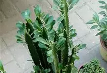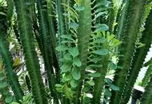 霸王鞭,是大戟科大戟属的多年生肉质灌木,全株含白色乳汁;茎直立,茎基部圆柱形,上部4~5纵棱,边缘波状,外面深绿色;叶互生,上部叶密集,近于簇生,具短柄,其基部有利刺1对;叶片披针形,先端圆,…全部>>