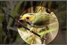 棕脸鹟莺:体长10厘米,是一种色彩亮丽而有特色的莺鸟。头栗色,具黑色侧冠纹。上体绿,腰黄色。下体白,颏及喉杂黑色点斑,上胸沾黄。与栗头鹟莺的区别在头侧栗色,白色眼圈不显著且无翼斑。…全部>>