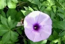 五爪金龙 Sweet),旋花科番薯属多年生缠绕草本植物。茎细长,有细棱;叶片为掌状;花冠紫红色、紫色或淡红色、偶有白色,漏斗状;蒴果近球形。花期5~12月。五爪金龙的叶子类似掌状,有5至7个裂痕,…全部>>