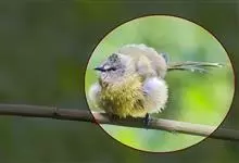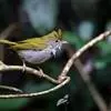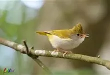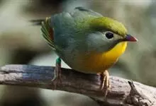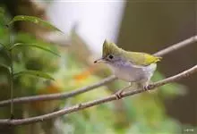 白腹凤鹛是绿鹃科、绿凤鹛属的小型鸟类,体长10-12厘米。上体从头到尾黄绿色,有短的羽冠,头顶微具黑色羽轴纹;眼先、眼周,耳羽和下体灰白色,尾下覆羽黄色。虹膜褐色或红褐色,上嘴浅褐色或肉褐色,…全部>>